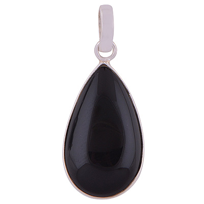 Stunning Gemstone Black Onyx Pear Shape 925 Sterling Solid Silver Pendant