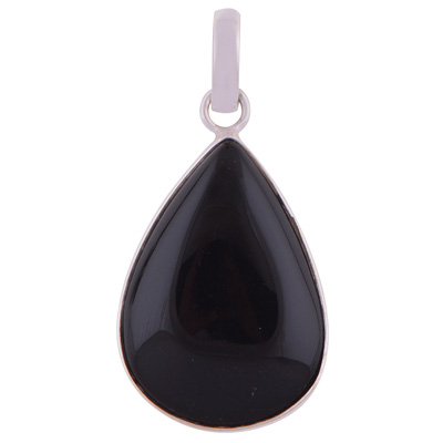 Stunning Gemstone Black Onyx Pear Shape 925 Sterling Solid Silver Pendant