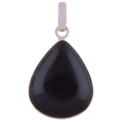 Stunning Gemstone Black Onyx Pear Shape 925 Sterling Solid Silver Pendant