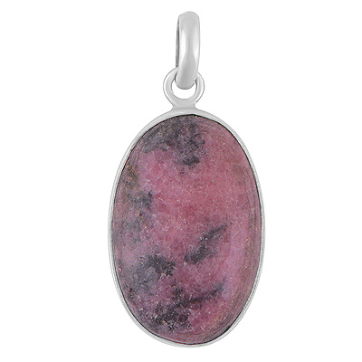 Gorgeous Plain Collet Rhodonite Oval Shape 925 Sterling Solid Silver Pendant