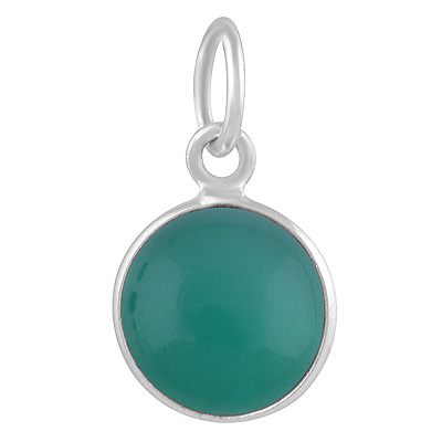 Home | Silver Pendants | Cabochon Pendants | Alluring Gemstone Bezel Green Onyx Round Shape 925 Sterling Solid Silver Pendant