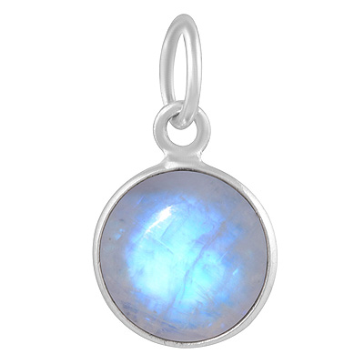 Home | Silver Pendants | Cabochon Pendants | Alluring Gemstone Bezel Rainbow Moonstone Round Shape 925 Sterling Solid Silver Pendant