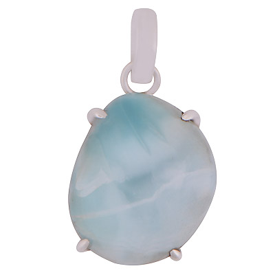 Gorgeous Prong Setting Around Larimar Oval Shape 925 Sterling Solid Silver Pendant