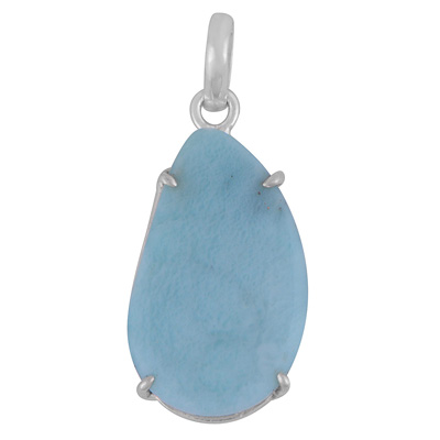 Gorgeous Prong Setting Around Larimar Pear Shape 925 Sterling Solid Silver Pendant