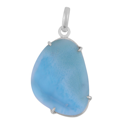 Gorgeous Prong Setting Around Larimar Fancy Shape 925 Sterling Solid Silver Pendant