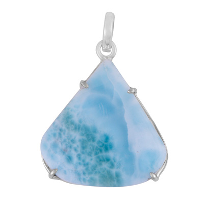 Gorgeous Prong Setting Around Larimar Fancy Shape 925 Sterling Solid Silver Pendant