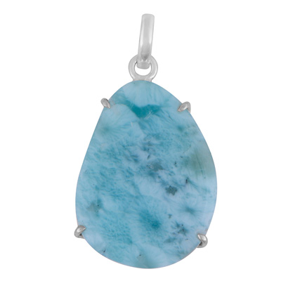 Gorgeous Prong Setting Around Larimar Pear Shape 925 Sterling Solid Silver Pendant