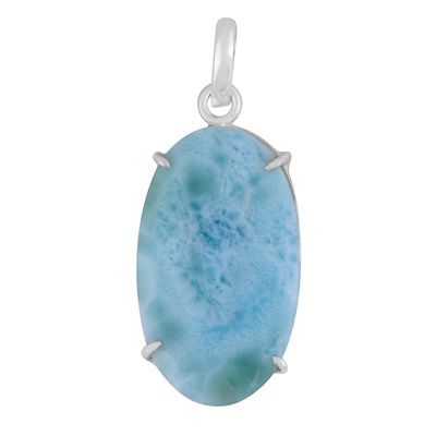 Gorgeous Prong Setting Around Larimar Oval Shape 925 Sterling Solid Silver Pendant