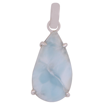 Gorgeous Prong Setting Around Larimar Pear Shape 925 Sterling Solid Silver Pendant