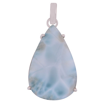 Gorgeous Prong Setting Around Larimar Pear Shape 925 Sterling Solid Silver Pendant