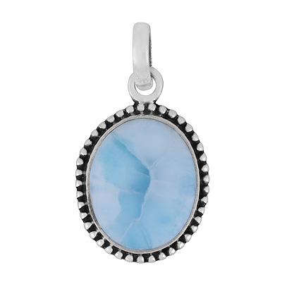 Alluring Rawa Work Around Larimar Oval Shape 925 Sterling Solid Silver Pendant