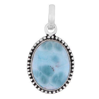 Home | Silver Pendants | Cabochon Pendants | Alluring Rawa Work Around Larimar Oval Shape 925 Sterling Solid Silver Pendant