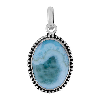 Alluring Rawa Work Around Larimar Oval Shape 925 Sterling Solid Silver Pendant