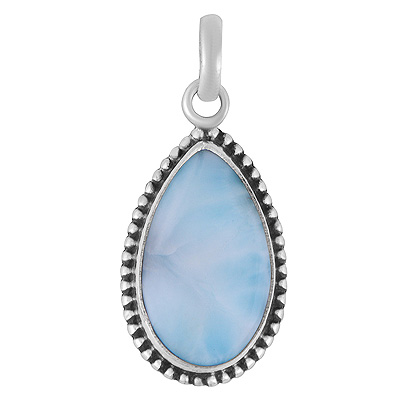 Alluring Rawa Work Around Larimar Pear Shape 925 Sterling Solid Silver Pendant