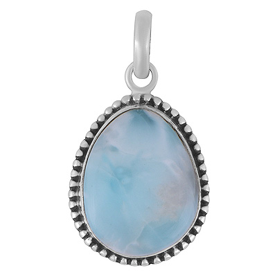 Alluring Rawa Work Around Larimar Oval Shape 925 Sterling Solid Silver Pendant