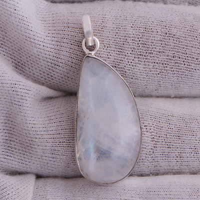 Home | Silver Pendants | Cabochon Pendants | Gorgeous Plain Rainbow Moonstone Fancy Shape 925 Sterling Solid Silver Pendant