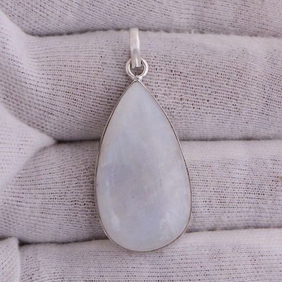 Gorgeous Plain Rainbow Moonstone Pear Shape 925 Sterling Solid Silver Pendant
