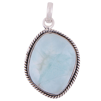 Home | Silver Pendants | Cabochon Pendants | Stunning Statement Larimar Fancy Shape 925 Sterling Solid Silver Pendant