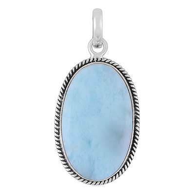 Stunning Statement Larimar Oval Shape 925 Sterling Solid Silver Pendant