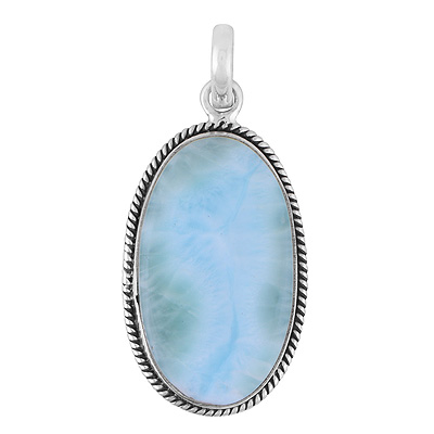 Stunning Statement Larimar Oval Shape 925 Sterling Solid Silver Pendant