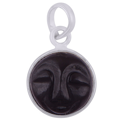 Home | Silver Pendants | Cabochon Pendants | Beautifully Face Carved Bezel Black Onyx Round Shape 925 Sterling Solid Silver Pendant