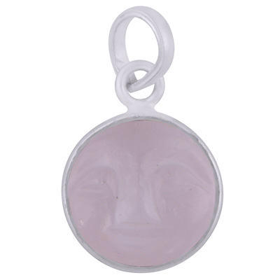 Home | Silver Pendants | Cabochon Pendants | Beautifully Face Carved Bezel Crystal Round Shape 925 Sterling Solid Silver Pendant