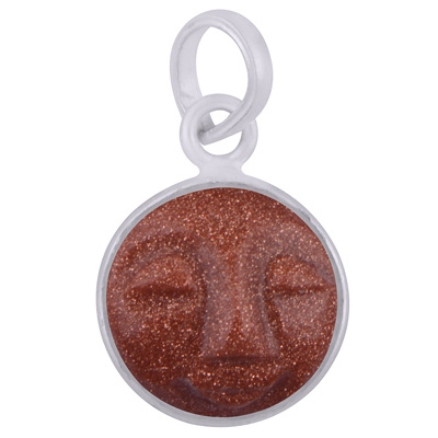 Home | Silver Pendants | Cabochon Pendants | Beautifully Face Carved Bezel Golden Sun Stone Round Shape 925 Sterling Solid Silver Pendant