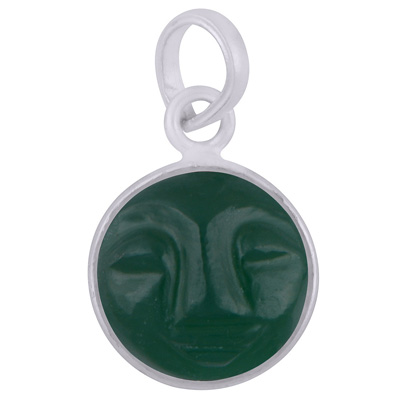 Home | Silver Pendants | Cabochon Pendants | Beautifully Face Carved Bezel Green Onyx Round Shape 925 Sterling Solid Silver Pendant