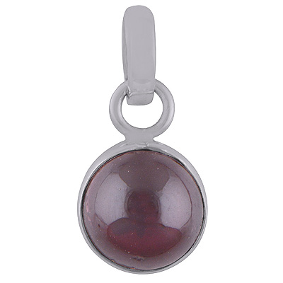 Home | Silver Pendants | Cabochon Pendants | Plain Collet Natural Garnet Round Shape 925 Sterling Solid Silver Pendant