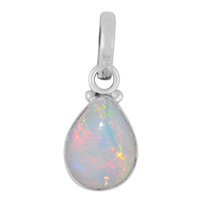 Plain Collet Natural Ethiopian Opal Pear Shape 925 Sterling Solid Silver Pendant