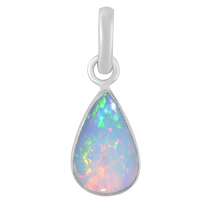 Home | Silver Pendants | Cabochon Pendants | Plain Collet Natural Ethiopian Opal Pear Shape 925 Sterling Solid Silver Pendants