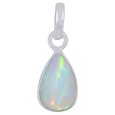 Plain Collet Natural Ethiopian Opal Pear Shape 925 Sterling Solid Silver Pendant