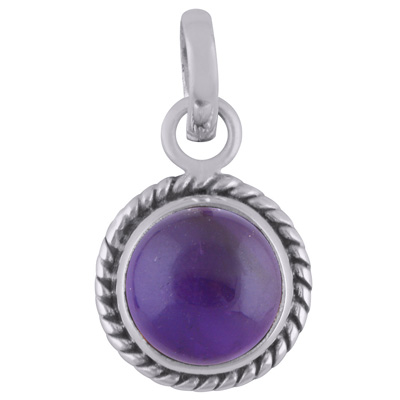 Home | Silver Pendants | Cabochon Pendants | Gorgeous Twisted Wire Work Around Amethyst Round Shape 925 Sterling Solid Silver Pendants