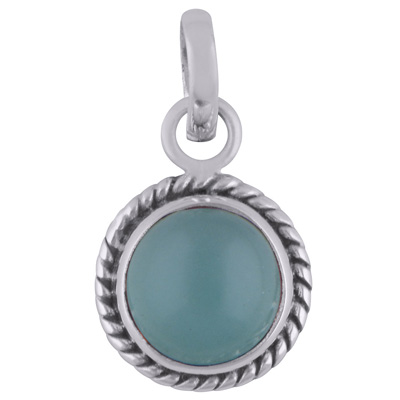 Home | Silver Pendants | Cabochon Pendants | Gorgeous Twisted Wire Work Around Aqua Chalcedony Round Shape 925 Sterling Solid Silver Pendants