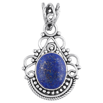 Home | Silver Pendants | Cabochon Pendants | Gorgeous Handwork Around Lapis Oval Shape 925 Sterling Solid Silver Pendant