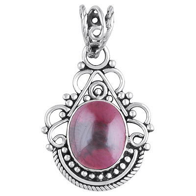 Home | Silver Pendants | Cabochon Pendants | Gorgeous Handwork Around Garnet Oval Shape 925 Sterling Solid Silver Pendant