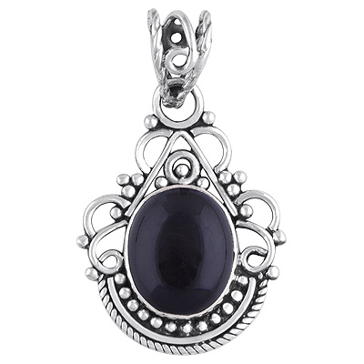 Home | Silver Pendants | Cabochon Pendants | Gorgeous Handwork Around Black Onyx Oval Shape 925 Sterling Solid Silver Pendant