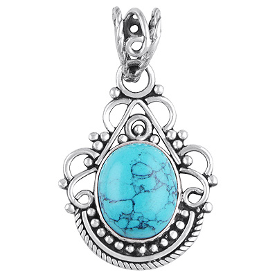 Home | Silver Pendants | Cabochon Pendants | Gorgeous Handwork Around Turquoise Oval Shape 925 Sterling Solid Silver Pendant