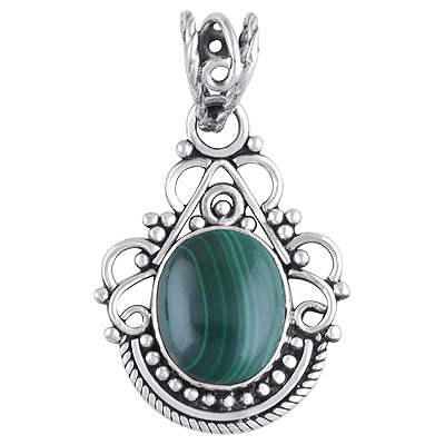 Home | Silver Pendants | Cabochon Pendants | Gorgeous Handwork Around Malachite Oval Shape 925 Sterling Solid Silver Pendant