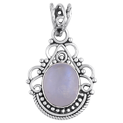 Home | Silver Pendants | Cabochon Pendants | Gorgeous Handwork Around Rainbow Moonstone Oval Shape 925 Sterling Solid Silver Pendant