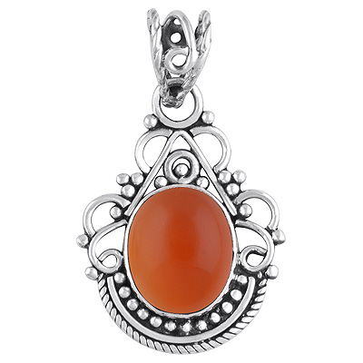 Home | Silver Pendants | Cabochon Pendants | Gorgeous Handwork Around Carnelian Oval Shape 925 Sterling Solid Silver Pendant