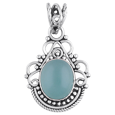 Home | Silver Pendants | Cabochon Pendants | Gorgeous Handwork Around Aqua Chalcedony Oval Shape 925 Sterling Solid Silver Pendant