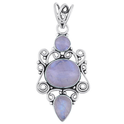 Home | Silver Pendants | Cabochon Pendants | Beautiful Handwork Around Rainbow Moonstone Round, Oval, Pear Shape 925 Sterling Solid Silver Pendant