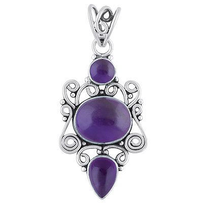 Home | Silver Pendants | Cabochon Pendants | Beautiful Handwork Around Amethyst Round, Oval, Pear Shape 925 Sterling Solid Silver Pendant