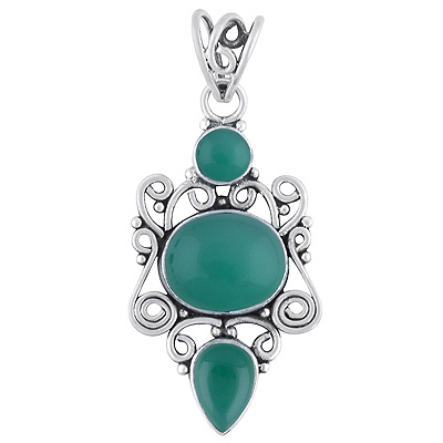 Home | Silver Pendants | Cabochon Pendants | Beautiful Handwork Around Green Onyx Round, Oval, Pear Shape 925 Sterling Solid Silver Pendant