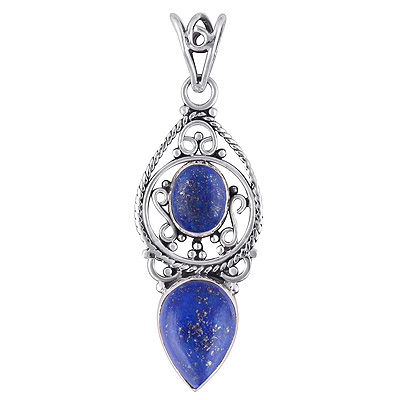 Home | Silver Pendants | Cabochon Pendants | Beautiful Rawa & Wire Work Around Lapis Oval,Pear Shape 925 Sterling Solid Silver Pendant