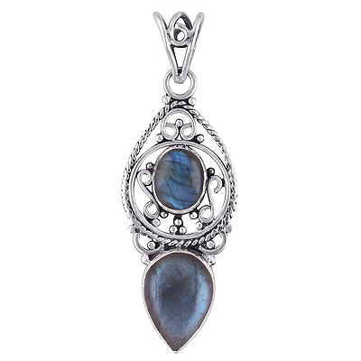 Home | Silver Pendants | Cabochon Pendants | Beautiful Rawa & Wire Work Around Labradorite Oval,Pear Shape 925 Sterling Solid Silver Pendant