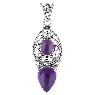Home | Silver Pendants | Cabochon Pendants | Beautiful Rawa & Wire Work Around Amethyst Oval,Pear Shape 925 Sterling Solid Silver Pendant