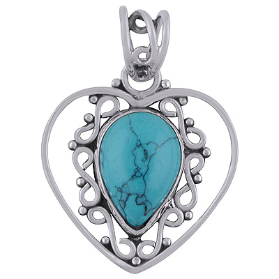 Home | Silver Pendants | Cabochon Pendants | Alluring Heart with Rawa Work Around Turquoise Pear Shape 925 Sterling Solid Silver Pendant