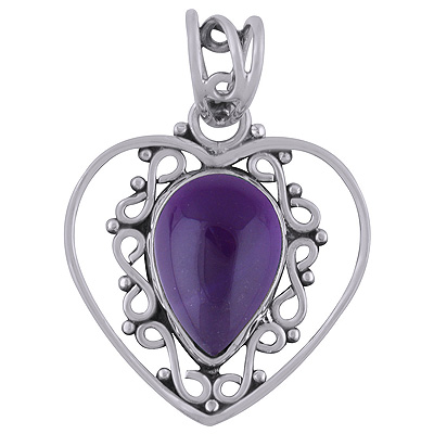 Home | Silver Pendants | Cabochon Pendants | Alluring Heart with Rawa Work Around Amethyst Pear Shape 925 Sterling Solid Silver Pendant